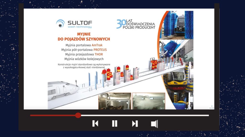 Zapraszamy do obejrzenia nowej prezentacji video myjni szynowych naszej produkcji. Prezentacja została uzupełniona o zdjęcia i filmy z ostatnich instalacji myjni taboru tramwajowego i kolejowego m.in. w Krakowie, Łodzi, Szczecinie oraz na Słowacji.