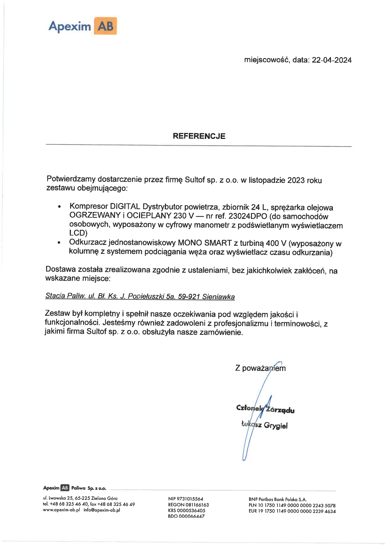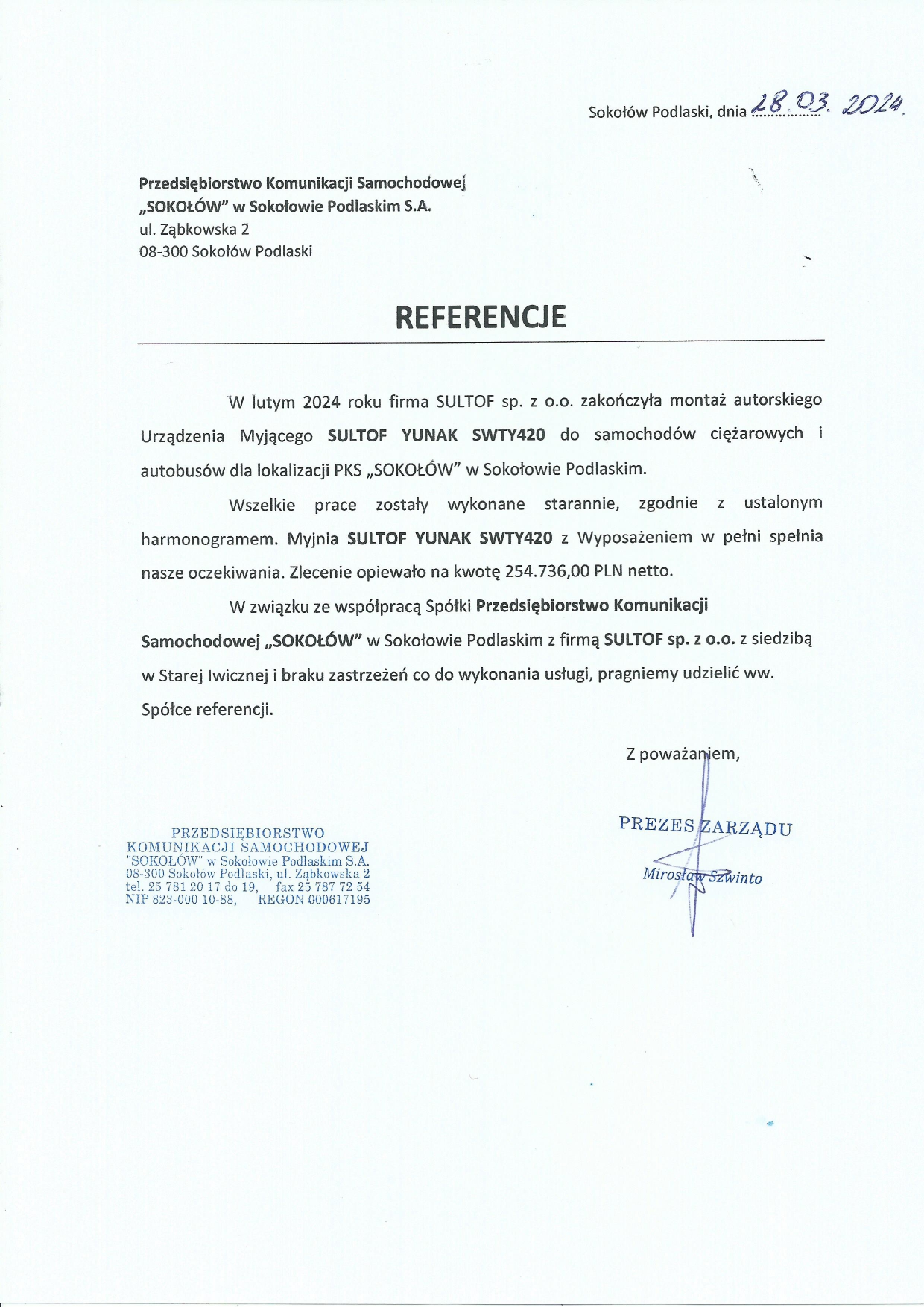 Mając na uwadze profesjonalizm i rzetelność Sultof sp.z o.o. polecamy tę firmę jako godnego zaufania