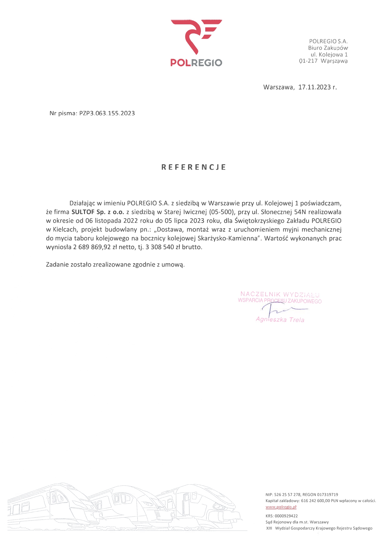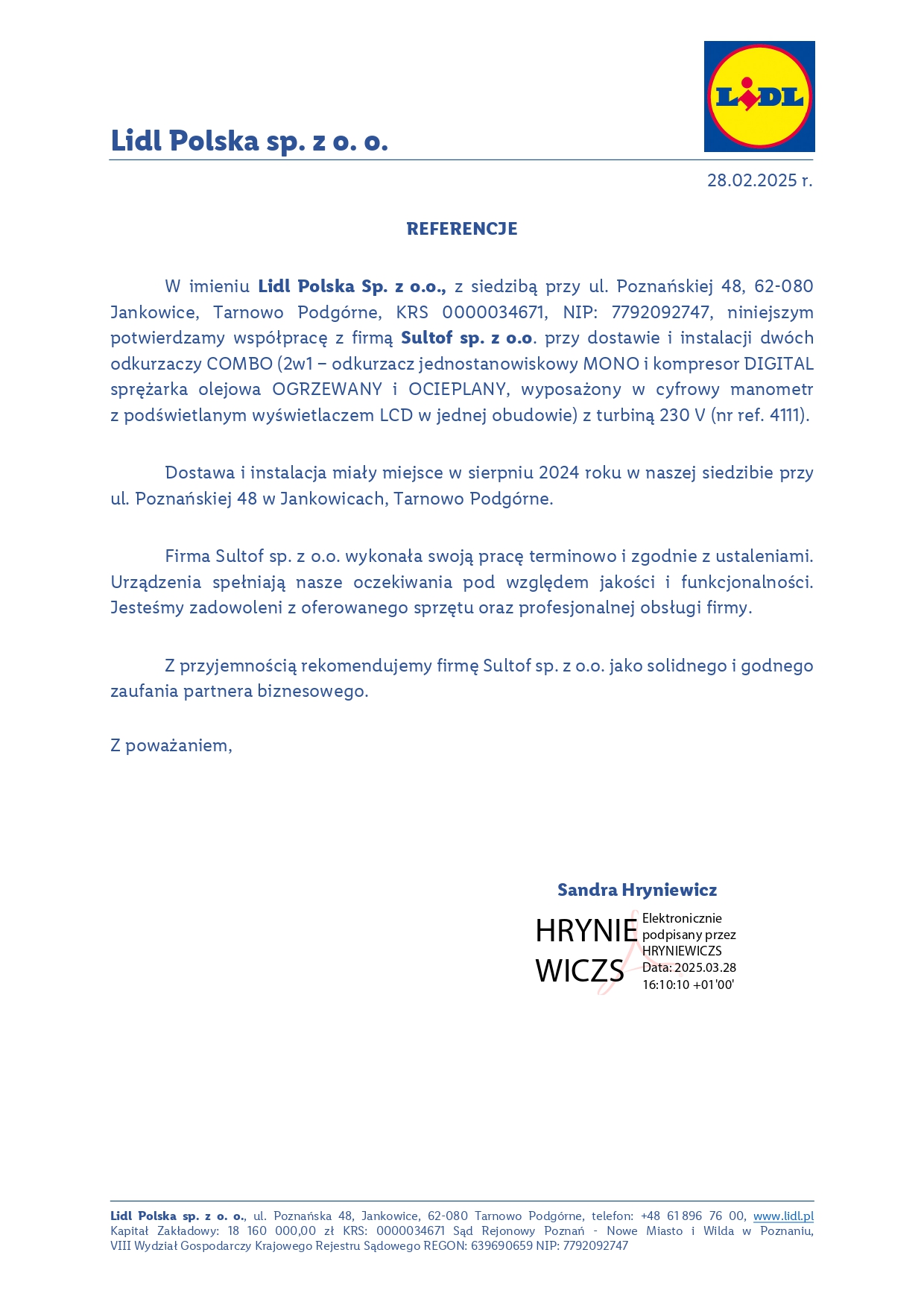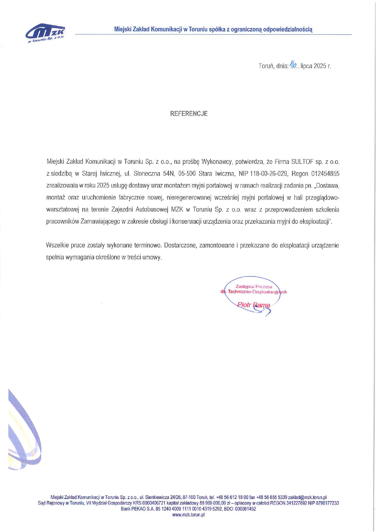Pragniemy polecić firmę Sultof sp. z o.o. innym przedsiębiorcom jako rzetelnego i godnego zaufania